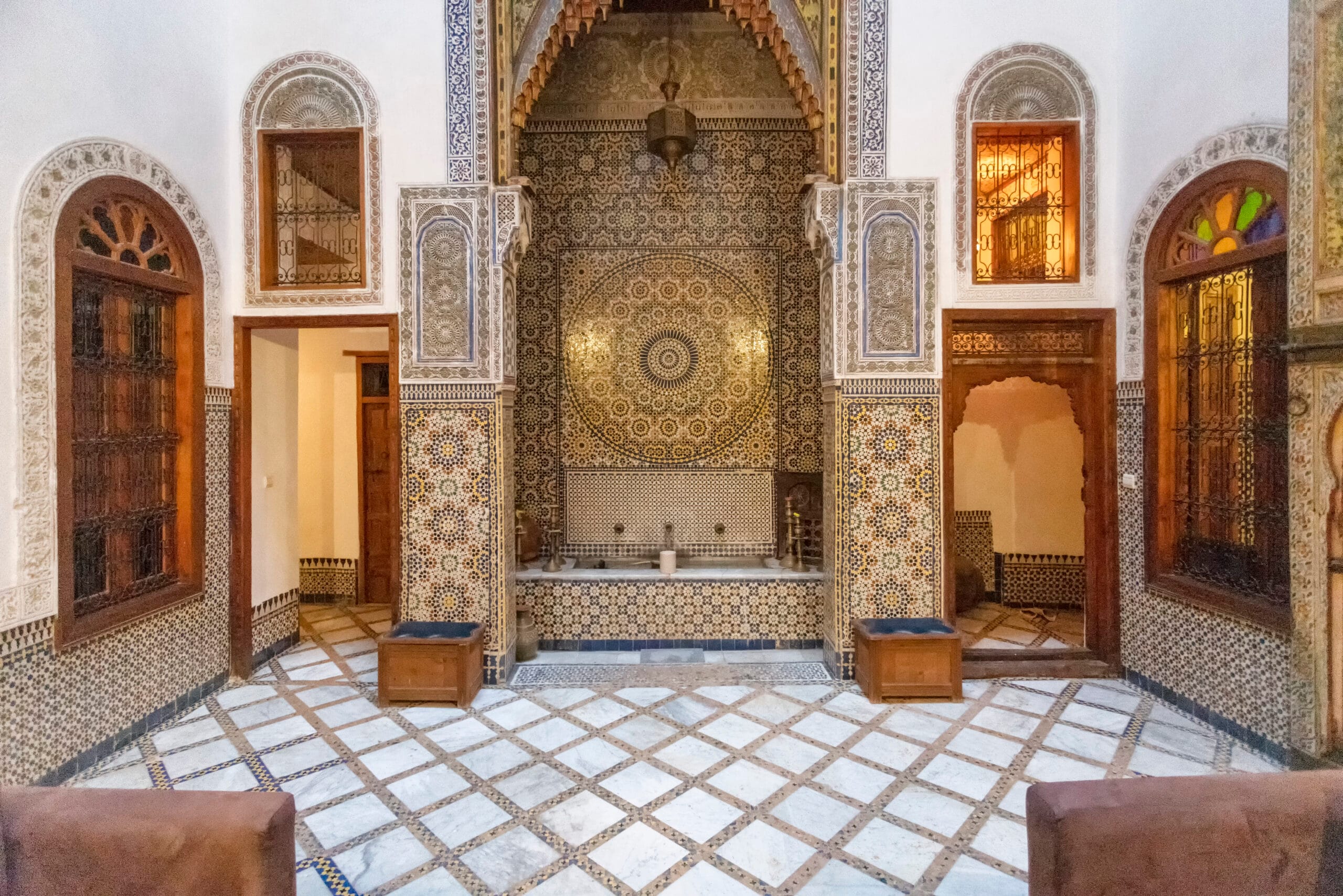 Behind the high, windowless walls of the medina lie architectural treasures of breathtaking beauty. Fes is a city of interiors, where the plain exterior protects the opulence within.